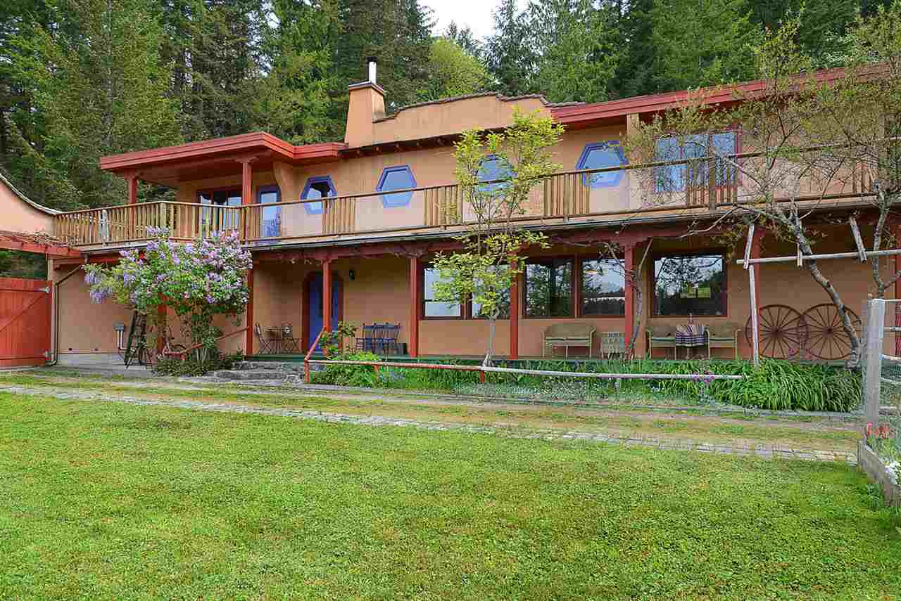 An Italian inspired casa overlooking Gunboat Bay in Pender Harbour. Almost 10 acres of prime growing land in a micro climate. Almost 2 acres of south facing vineyard. Large enclosed vegetable garden and many fruit trees. The 4/5 bedroom house is open and inviting - great for entertaining with a lovely courtyard, pond and hot tub off the kitchen. There is also a 5 stall barn complete with a heated tack room. Hundreds of kilometres to ride or hike. Nature and wildlife abound. Too many features to list. Call for a complete information package.
