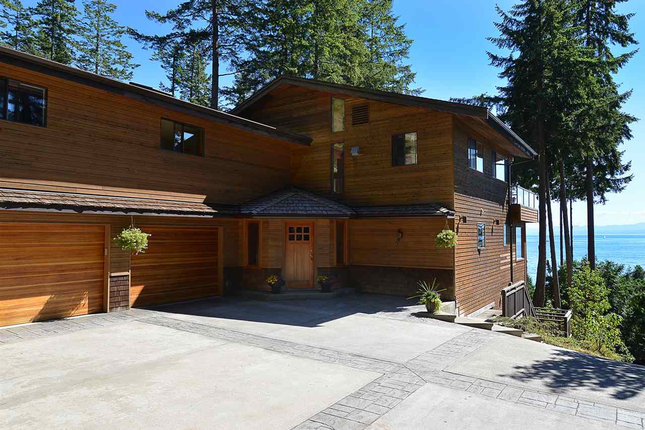 Sitting high atop this private 1.25 acre property is a beautiful custom built 3,650 sq.ft. West coast home with gorgeous South-West ocean views. 4 bedrooms (3 with ensuite) including a spacious main floor master suite separate from the others. The open concept living/dining/kitchen features vaulted ceilings, hardwood floors & huge floor to ceiling windows leading to a fabulous outdoor patio. Tons of sunshine and wonderful for entertaining. Other features include a large workshop/storage area, a 3 car garage, 2 fireplaces, Jacuzzi tub & professional landscaping including private gardens with a waterfall. Directly across the street is the level beach access to the Golden Mile. Convenient & desirable West Sechelt location just 5 minutes to town. Call for full details & your private tour.