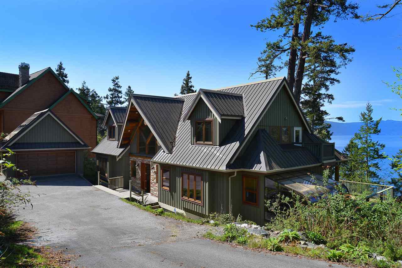 An elegant high bank waterfront home with stunning ocean views in prestigious Daniel Point was the 2001 PNE home. Featuring huge cedar beams, a two-storey rock fireplace, cedar-clad vaulted ceilings & original native-themed art, this house reflects the true essence of West Coast spirit. Energy efficiency and environmental friendliness were key components in the 5,000+ sq.ft. of design including reclaimed plank flooring, h/w radiant heating & a metal roof. Many other features include a private trail to a secluded cove, 27' vaulted ceilings, steam shower, granite countertops, custom cabinetry, built-in vacuum, security system, hand carved railings & a basement roughed-in for a two bedroom suite... the list goes on. Call us for a full information package.