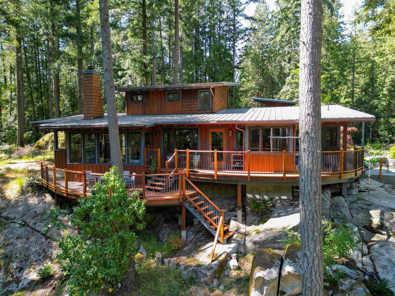Custom Built and Forest Views If you have been looking for a quality built home with a unique contemporary style you have found it at 3771 Sunshine Coast Highway. From the moment you enter, the craftsmanship and high standards of this special residence are apparent. The house features 3 bedrooms, 2 bathrooms, expansive decks and a unique overhead catwalk to office/studio. The interior of the house exudes warmth with the wood accents including post and beam structure fir floors, windows and interior doors. Enjoy the benefits of this small strata (which has no monthly fees) and the 14 acres of common property which insures complete privacy in a parklike setting with old growth timber and dramatic rock outcroppings. Great location, short stroll to Henderson Beach, 15 mins from the ferry.