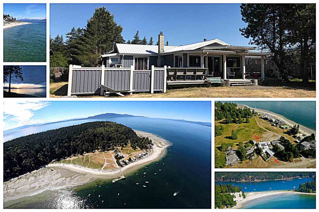 One of BC's only white sandy beaches on an island that you can walk all around & across the top. 2 1/2 hrs from Vancouver by car or 20 min by sea plane. Steps to the beach & Gov't dock with water taxi service. Sun & sunsets from both North & South decks plus panoramic views of The Gap off Welcome Pass. Minutes to Epsom Point fishing area & Secret Cove. Renovated 2 bed 2 bath cottage plus 2 sleeping cabins with lofts total 7 bedrooms, 4 baths, outdoor shower & sink, laundry room, workshop, garage, covered storage, fenced self watering garden, solar system, generator, satellite, fire pit, fire tanks & pump. Island services include year round caretakers, monitored water, tennis court & boardwalk. Ownership includes portion of caretakers cabin, 10 acre lot, 2 waterfront lots & Park area.