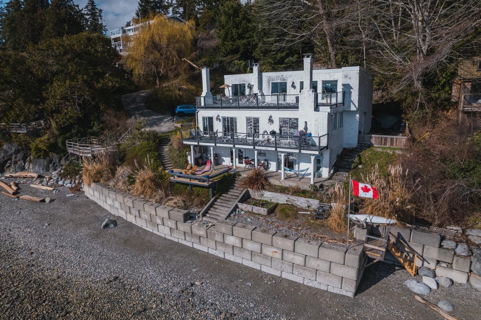 Minutes from downtown Sechelt, this large Mediterranean style home with southern exposure takes advantage of both sunrises and sunsets all year round! This home is extremely private. The only sounds you hear are the birds and the waves. The lower floor is run as a very popular B and B. The main floor has the kitchen, dining room, living room and two bedrooms. The upper floor is a massive master suite with an amazing walk-in closet and a bath tub with a beautiful view of the ocean.