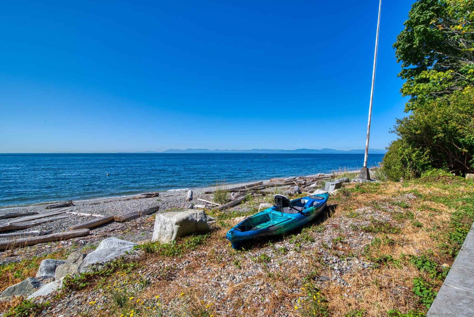 Roberts Creek low bank Waterfront - .74 acre You could wait a lifetime for this type of property...... on the right hand side you have Camp Bing - aprox 200 acres, you have 108' frontage, you can build a second dwelling, you are the last home on the Street, property is nicely terraced, you have a large boat house, workshop, greenhouse, double garage. large RV or boat carport, roof about 10 years, a dream beach with little pebbles and low tide sand bars. The home shows its age but has good bones. Truly one of the finest properties we have seen in Roberts Creek.