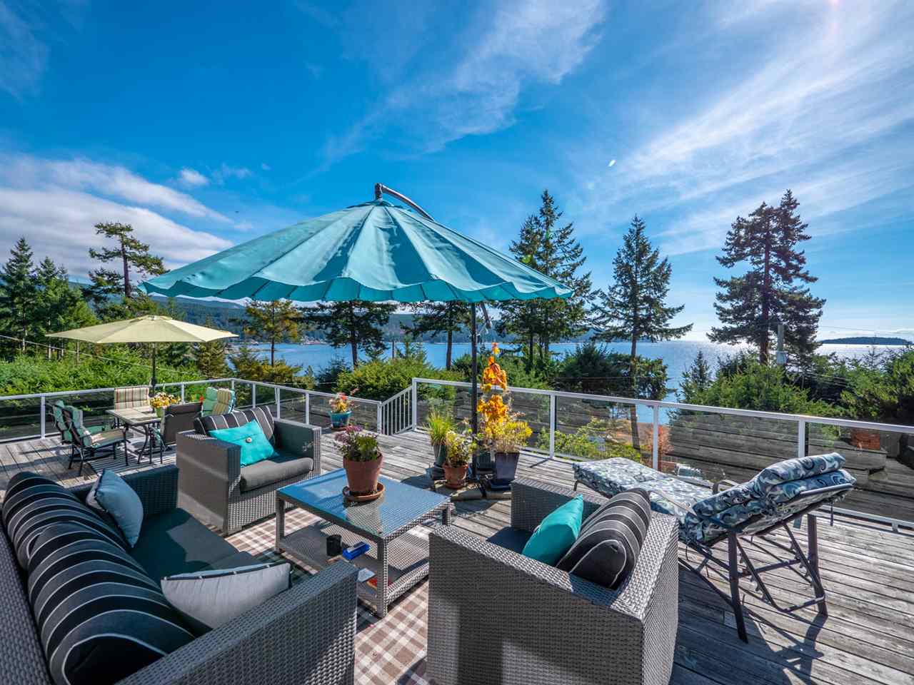 Spectacular Ocean & Island views from this sun-drenched home in one of the Coast's best neighbourhoods. Built with quality and attention to detail top of mind, this beautiful 4,152 sq.ft. home features a gorgeous new kitchen, deluxe master suite, living room w/ hardwood floors & a floor to ceiling stone fireplace, 1,700+ sq.ft. outdoor patio with hottub, an oversized finished double garage, tons of storage - an absolute must see in person! Walk 30 seconds to low-bank beach access for launching a kayak or going for a swim. Meticulously maintained, move in ready. An absolute 10/10.