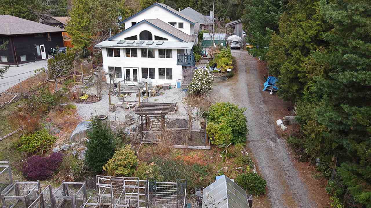Located in a quiet, peaceful neighbourhood this home + suite + detached studio/workshop offers a bright, sunny Southern exposed nearly 17,000 sq.ft. property to relax & enjoy the Sunshine Coast lifestyle! The main house features an open concept kitchen/living/dining, separate office or den & a huge master bedroom, while the lower level is a fully self contained 1 or 2 bedroom suite, both with enclosed sun rooms for extra living space & to allow natural sunlight inside. The detached studio with water & power is ideal for a home based business, hobby area or a workshop. Low-maintenance, fully fenced property with raised vegetable beds, fruit trees, lovely gardens & a shed for your storage needs. N/Gas furnace, vaulted ceilings, lots of skylights - a fabulous home with a great feel to it!