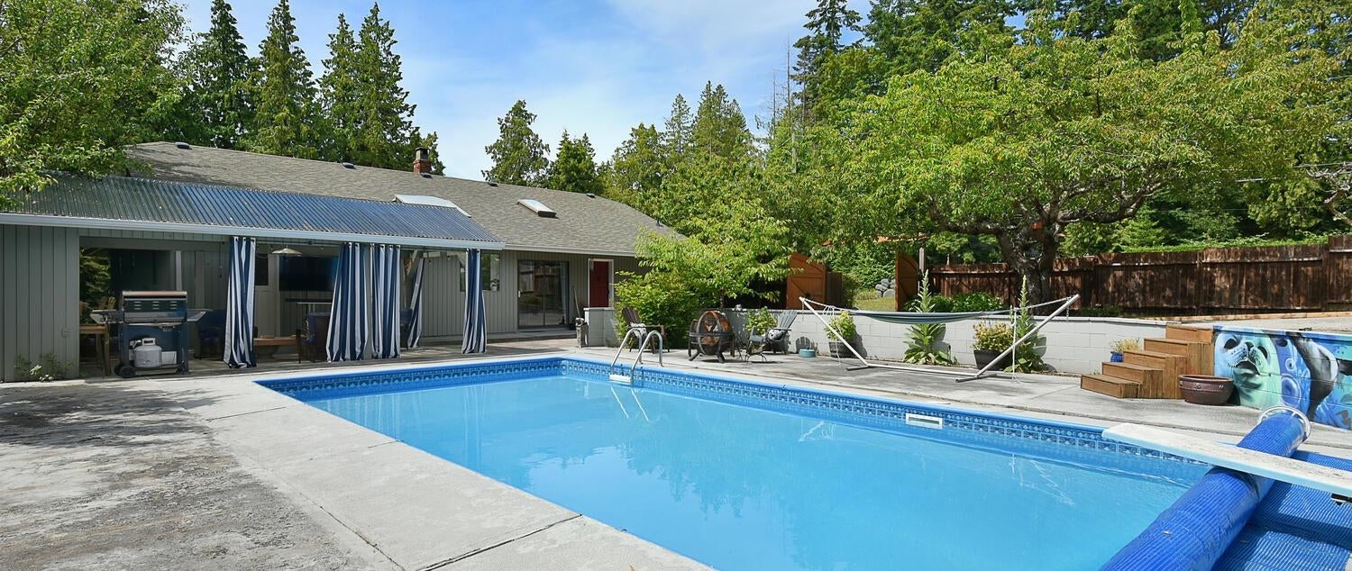 Bright & sunny corner property with a 3 bedroom rancher, 30'x30' detached workshop/garage and a beautiful in-ground swimming pool with cabana hang out space! This rancher has been tastefully renovated with a newer septic system, h/w tank, appliances & roof. A very private setting situated on just under 1/2 of an acre, the property is fully fenced with several fruit trees, lovely raised flower beds & a large vegetable garden. Incredible location, not far from various beach access points & extensive walking trails, and just 15 minutes to Sechelt. This is your own private oasis for tons of Summer fun, ideal for relaxing & entertaining. Close to the bus system, schools & the local market. Call today!