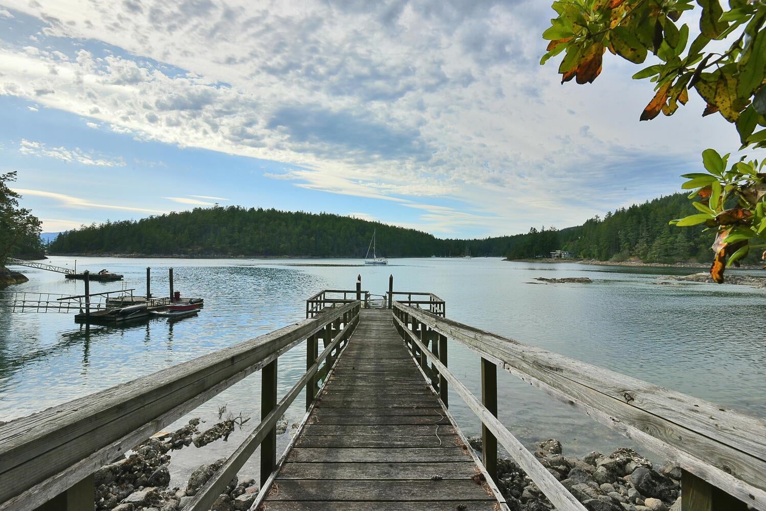 Nestled in a peaceful, forested setting, this Double A-Frame low bank waterfront home offers breathtaking western sunset views, gorgeous ocean vistas & rare deep water moorage. Enjoy direct oceanfront access & the convenience of your own private dock — perfect for boating, kayaking or fishing right from your doorstep. Inside, the home boasts a bright & airy layout with vaulted ceilings, a new kitchen & thoughtful upgrades throughout. With 2 bedrooms plus a spacious loft, there's plenty of room for family & guests. Located in an area of fine homes in coveted Secret Cove, this tranquil property combines the best of West Coast living: privacy, scenery & recreation. Swim off the dock, explore the surrounding waters, or simply relax in this super-cute, one-of-a-kind coastal retreat!