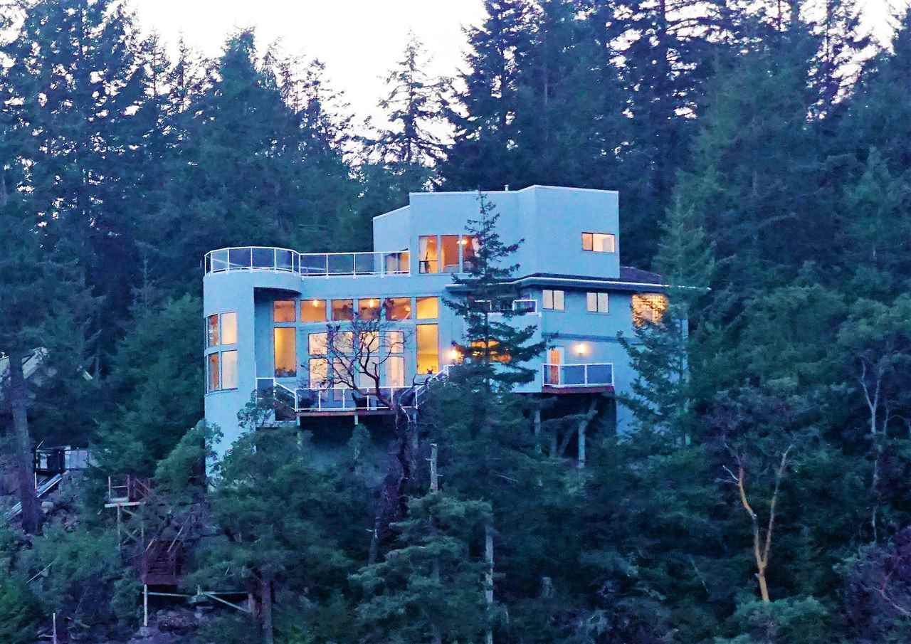 Masterfully designed tranquil waterfront home made for entertaining, privacy and complete relaxation. Stunning views of Bargain Harbour from every room. The 3 bedroom/3 bath main house, with the top floor master suite opening on to huge sun-drenched decks, features 18’ floor to ceiling windows, a work of art California slate fireplace, spacious kitchen with granite countertops & s/s appliances, wine cellar & tasting room, media room & more. This fabulous package is situated on almost an acre of land and includes a dock with legal foreshore, separate 2 bedroom suite above the 3 car garage, low maintenance gardens, ponds, outdoor fireplace & custom concrete work. If you are seeking a full waterfront package this is a must see!