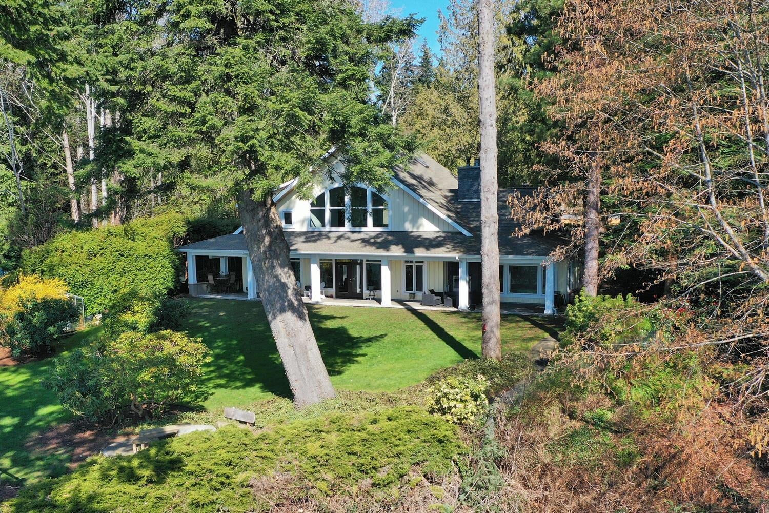 Custom built & designed, this beautiful waterfront home checks all the boxes - 3 bedrooms + den + loft space & 2.5 bathrooms, a separate plumbed guest/art studio, a large double garage & gorgeous established gardens. Situated on 1.26 acres w/tons of sunshine, ultimate privacy & stunning ocean views/sunsets, the house is gated & level. Main floor primary bedroom with w/i closet & spacious ensuite featuring a steam shower, chef's kitchen w/deluxe Thermador Range, radiant in floor heating + A/C, soaring vaulted ceilings w/ electronic skylights, n/gas FP inside & a wood burning FP outside, outdoor heaters & a lovely covered patio & BBQ area. The fabulous floor plan compliments the natural flow of this luxurious yet comfortable home, enhancing both appeal & functionality. Prime location!