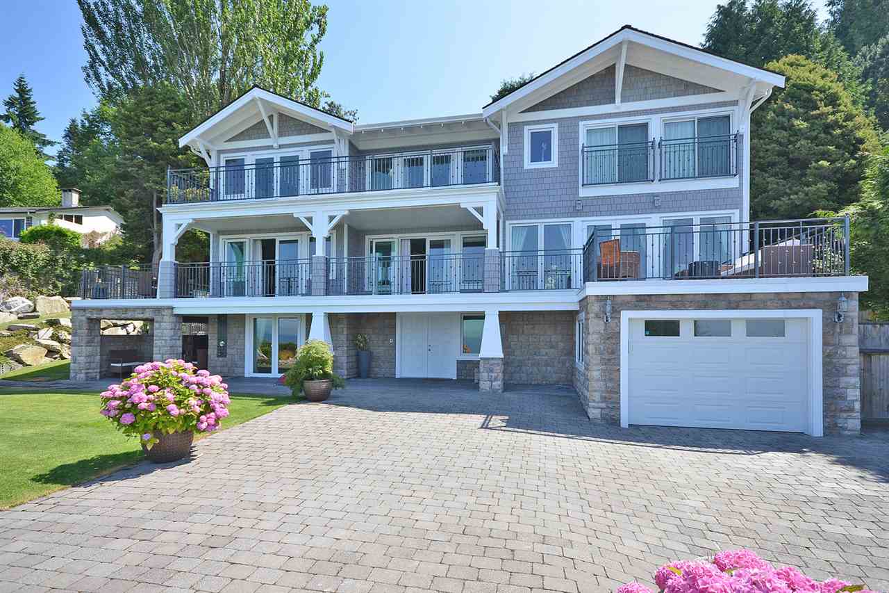 This absolutely stunning esplanade waterfront home is situated on one of the Coast's very best beaches & is truly one of a kind. No expense has been spared in the construction of the 4,300+ sq ft showpiece including 4 ensuited bedrooms, a gourmet kitchen, massive dining room, formal living room, family room, media room, gym & 5 fireplaces. Outside is nearly 1/2 acre w/ prof. landscaped gardens, an outdoor kitchen w/ fireplace, 1,800+ sqft of decks, outdoor shower & hot tub. Spectacular unobstructed ocean views & glorious sunsets w/ perfect SW exposure. Fully fenced, gated, private. Absolutely nothing to do here but move in & enjoy walks on the beach & the sound of the waves as you fall asleep. An outstanding package.