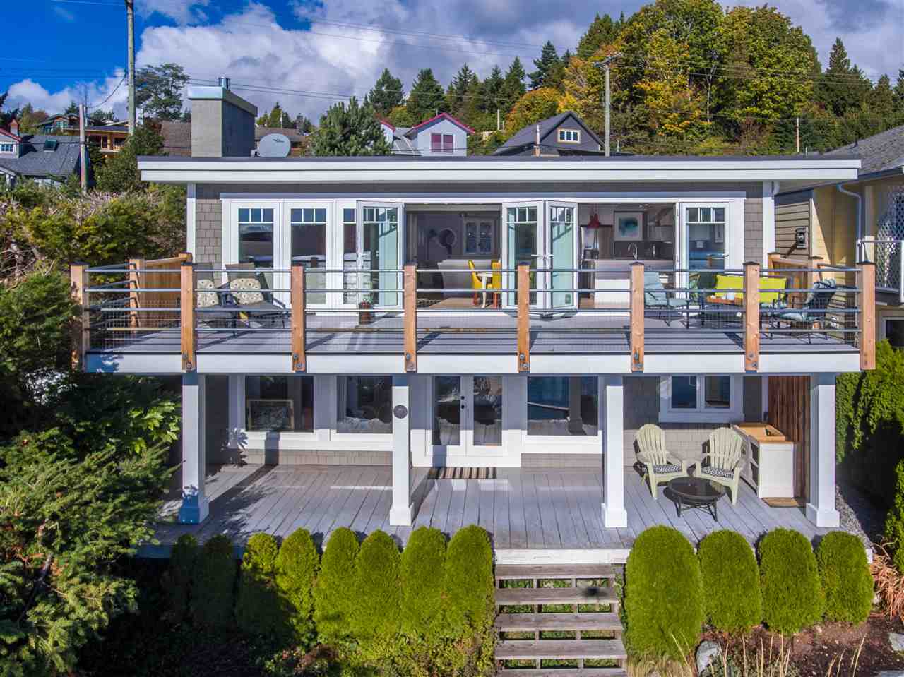 Luxurious beachfront living at its finest. Expertly renovated from top to bottom, this low-bank waterfront home in highly sought after Lower Gibsons is within walking distance to all shops & restaurants. The level entry main floor is open concept with floor to ceiling windows that capture unobstructed, panoramic ocean & island views from nearly every room. Hardwood floors, fabulous kitchen w/stone counters & s/s appliances including a Wolf range, n/gas fireplace and French doors leading to a spacious deck. The oceanfront master suite features an exquisite ensuite with claw foot tub, private covered porch & walk in closet. This is a truly spectacular home & setting that WOWs in all aspects. Just minutes to the ferry. Call today.