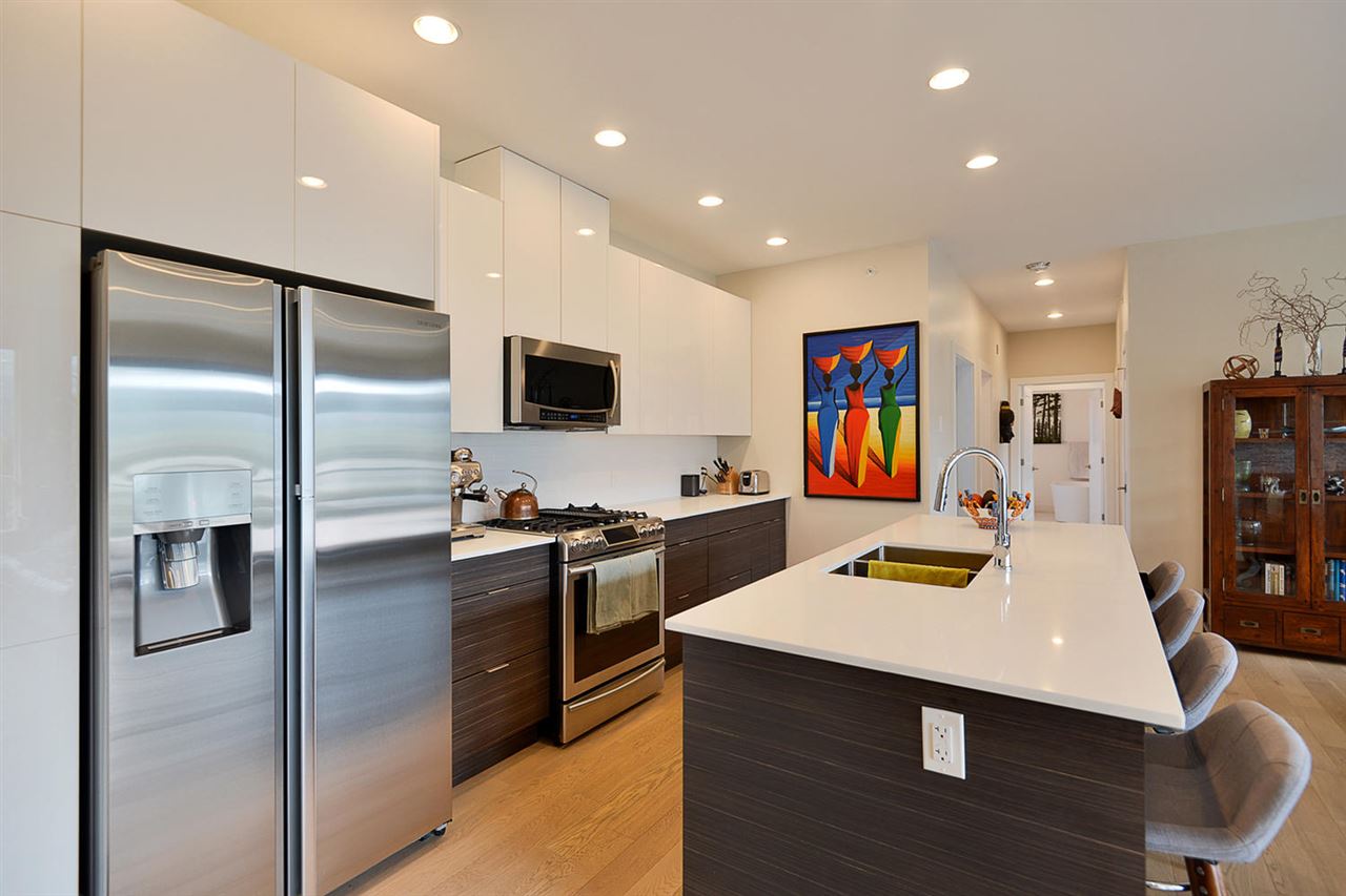 2 bedroom/2 bath end unit, top floor, the nicest in the development! Gorgeous ocean & mountain views are prominent from every room in this one level home just minutes to Downtown Sechelt. Quiet location with lots of sunshine, the building was constructed in 2017 to the highest of standards. Contemporary in design, the open concept main living space features a gourmet kitchen with high end s/s appliances, quartz countertops & a large island. Adjacent dining/living space with a custom stone fireplace and mantel, both rooms leading out to the patio with glass panel railings & n/gas hook ups for your BBQ & fireplace. The master bedroom is deluxe with radiant in floor heating, a spa inspired ensuite, walk in closet & access to the patio. Like new, this home is move in ready.