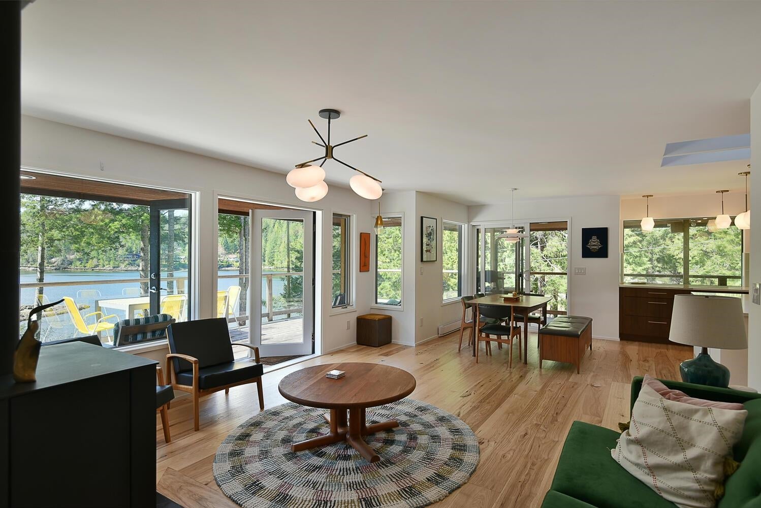 Esplanade Waterfront Mid-Century inspired modern masterpiece, with low-bank oceanfront beach access for swimming/kayaking just steps away. The thoughtful new expansion honours the original home's timeless aesthetic, now totalling 3,155 sq.ft. & featuring gorgeous ocean views stretching to 3 separate ocean points. This sale includes 2 separate properties ensuring complete privacy in this peaceful enclave. Every detail has been curated for design lovers & nature seekers alike including a stunning primary bedroom w/ soaker tub & electronic blinds, formal sunken living room, open concept kitchen/family room - all leading to the massive outdoor sun drenched patios with S/SW exposure, creating a ton of natural light. Radiant in floor heat, 3 FP's, separate gym, HW floors - this is a MUST SEE!
