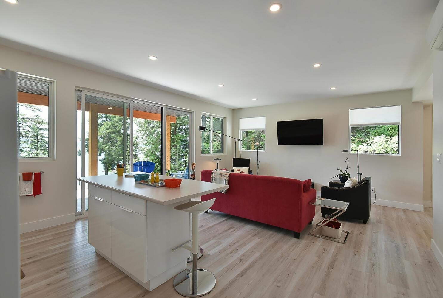 Incredible value for this custom built, nearly brand new WATERFRONT home in Gibsons. Situated on 5+ ACRES with a secondary building site, this luxurious home offers every imaginable feature including a gorgeous 2 bedroom lower level ocean view suite with a 100% 5 star rating on Airbnb. Level entry into the open main floor plan with vaulted ceilings, a cozy gas fireplace, a stunning kitchen with pantry, 2 primary bedrooms w/ ensuites, a path to the beach below, full warranty, tons of storage & NO GST. Enjoy the spectacular ocean views from nearly every room & from the spacious patio, ideal for soaking in the sunshine & relaxing with friends & family. A gated community, 12 minutes from the ferry & all of the shops & entertainment in Lower Gibsons. Bring an offer today!