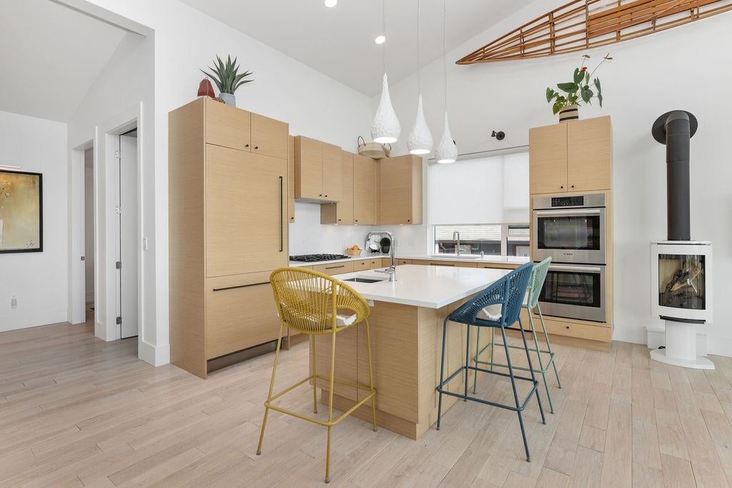 This stunning, newly built home in a quiet, sought after neighbourhood in Lower Gibsons offers spectacular ocean/island views. Boasting the highest quality, low maintenance construction w/ high-end finishes, the home features 17' vaulted ceilings creating an open & bright atmosphere. The modern design includes a dream kitchen w/top-of-the-line appliances, quartz countertops & a huge pantry, a culinary enthusiasts dream. Luxurious primary bedroom/ensuite, N/G furnace, A/C, LoE3-366 windows, 5" wide oak HW floors, "Jotul" N/Gas FP, electronic blinds, tons of storage. A separate suite provides flexibility for guests/potential rental income. Serviced by the famous Gibsons aquifer & on city sewer, ideally located walking distance to everything. A+ location, incredible value, move in ready!