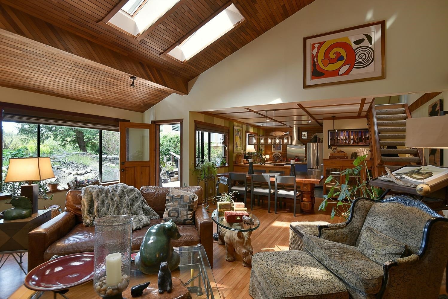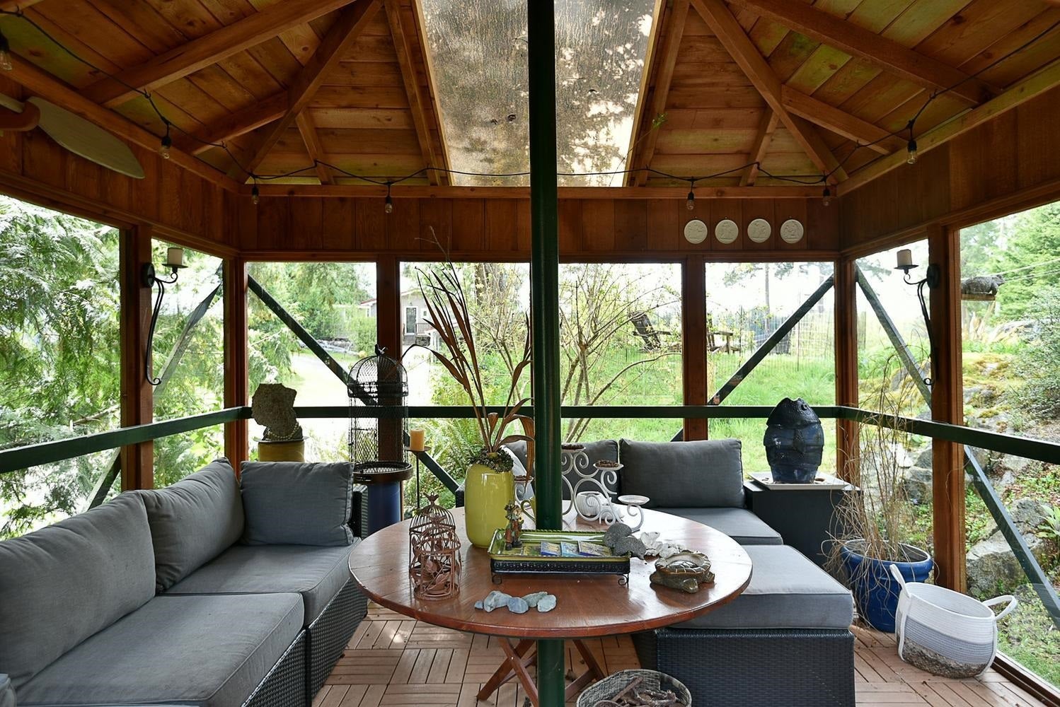 Nestled on a prime corner lot just steps from beach access, this fabulous home radiates charm! Set in a quiet, sought after neighbourhood, the property also offers a coveted boat slip at the community marina at the end of the cul-de-sac. Inside, warm craftsmanship shines throughout with handcrafted custom woodwork, original HW floors, vaulted ceilings & abundant natural light from the skylights & windows. Other features incl. a cozy gas FP, updated bathrooms, A/C & a fabulous top floor primary bedroom. The property also includes a massive 38'x 28' workshop & adjacent cold storage room, w/ tons of storage. The grounds are equally impressive, showcasing lovely gardens & a charming gazebo ideal for outdoor entertaining. A rare find, this is a very special offering in an unbeatable location.